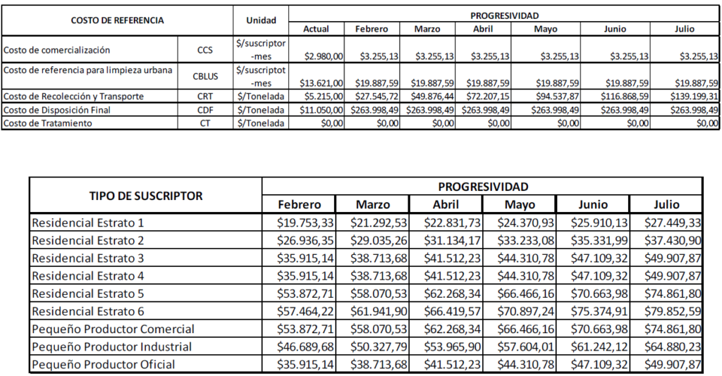 En cumplimiento de lo dispuesto en la Ley 142 de 1994, Resolución CRA 151 de 2001 y la Resolución CRA 853 de 2018, Servicios Públicos de Yalí S.A. E.S.P. procedió a actualizar los costos de referencia del servicio de aseo, para ello se tomó como base de información el periodo fiscal 2024. Le informamos a la comunidad que los resultados obtenidos de actualización de los costos y tarifas adoptado por la Junta Directiva, como Entidad Tarifaria Local, mediante Acta No. 01 del 06 de enero de 2026, serán los siguientes: